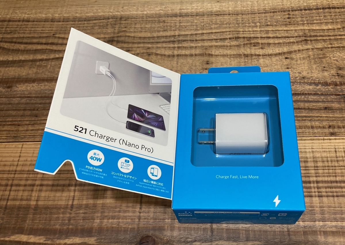 USB PD対応の充電器は、複数ポートタイプだと、一つだけ刺した時と、二つ以上刺した時で給電される容量が変わってしまうのでちょっと分かりづらいと思っていて、ポート一つのものが迷わず、間違えないので、分かりやすいと思っています。